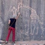 gravure rupestre girafe et homme avec lance - Circuit tadrart Rouge sahara algérie