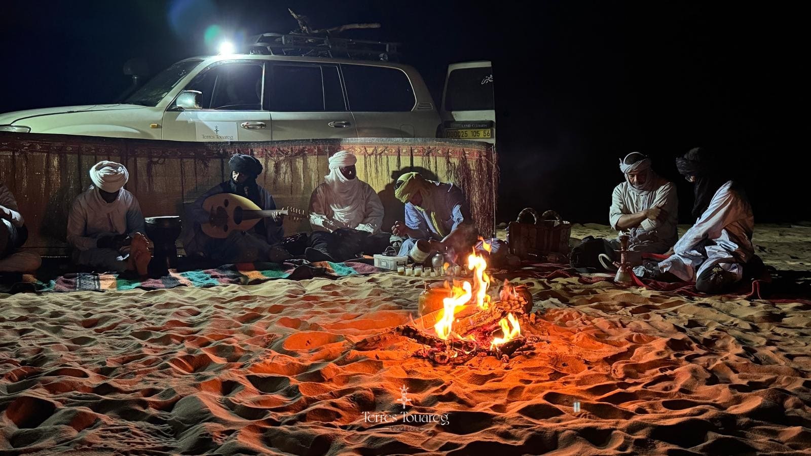 J’ai découvert des paysages magnifiques, dormi sous les étoiles, goûté à la vraie vie dans le désert, et partagé des moments forts avec les guides et les autres voyageurs. Chaque jour était une surprise : randonnées, canyons, peintures rupestres, dunes, et bien sûr, beaucoup de thé autour du feu accompagné des chants des musiciens touaregs.