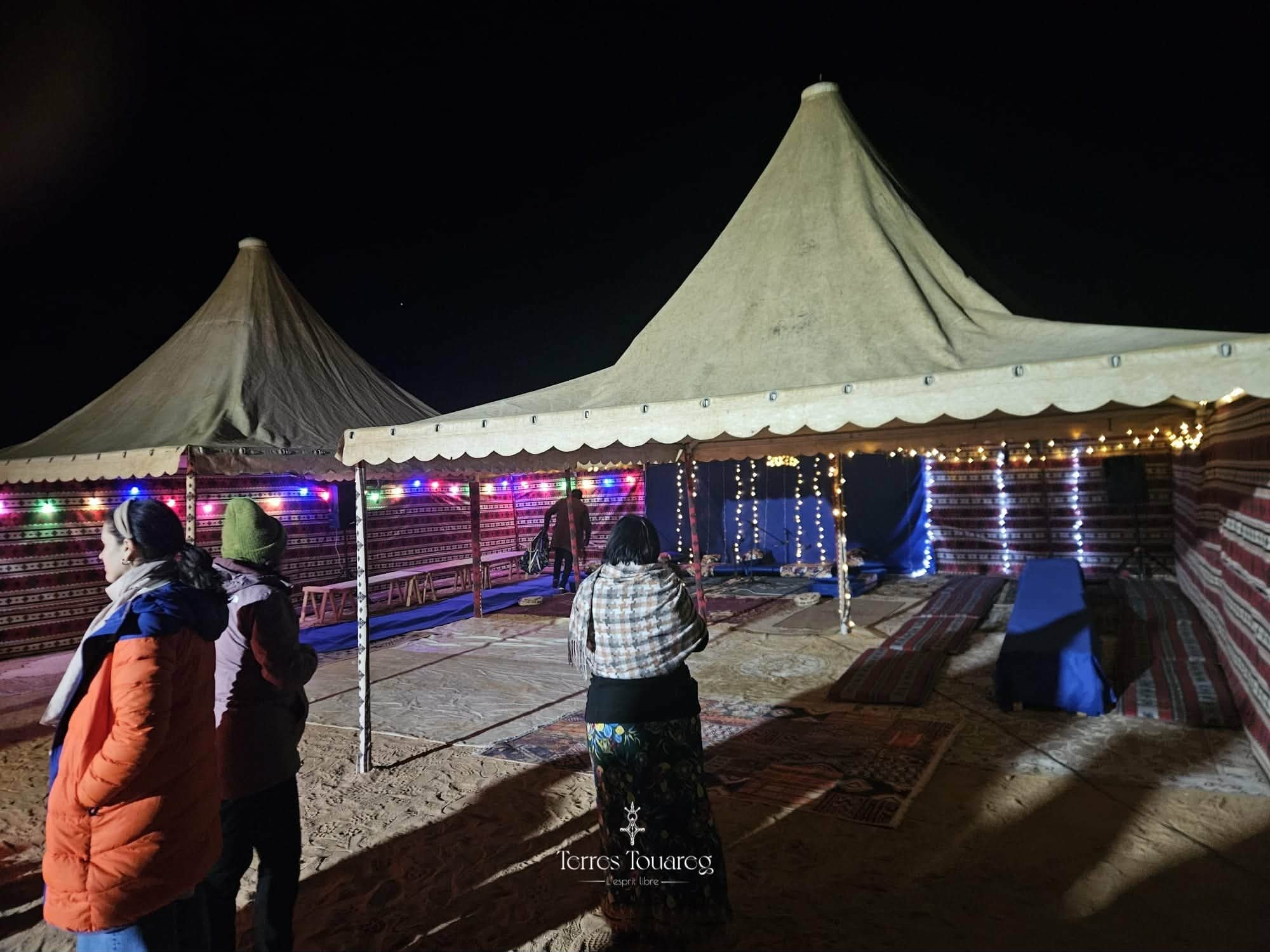 La serata di Capodanno sarà animata da una festa musicale con musicisti tuareg, che vi incanteranno con le loro melodie. Potrete gustare un mechoui cucinato sotto la sabbia, un pasto tipico dei nomadi.