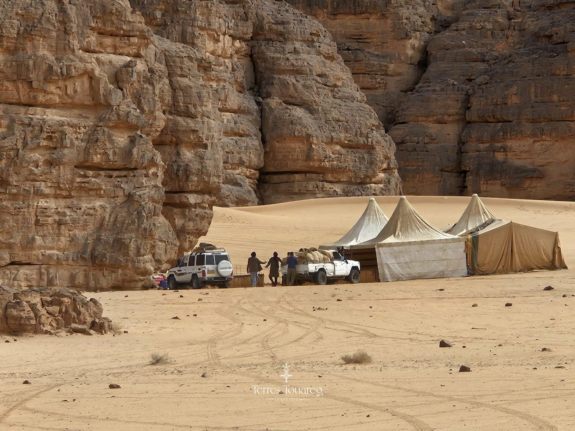 J'ai choisi une formule particulière car je souhaitais être seul avec mes guides pour pouvoir écrire un livre tiré de ce voyage. Kelly l'organisatrice reste toujours très disponible et à l'écoute et toujours prête à rendre service avec la plus grande gentillesse. Le circuit du Tadrart Rouge est inoubliable, d'une grande beauté et d'une certaine rudesse. Les guides sont d'une compétence sans faille et aux petits soins, cuisine, explications, repérage, ce qui rassure quand on met sa vie entre leurs mains. Ne vous formalisez pas de leurs discussions entre eux en Tamajaq et ne vous en sentez pas exclus, fondez-vous dans le truc. Pour ce qui me concerne j'ai eu en plus beaucoup de chance car la magie a opéré chaque jour, un jour le passage d'une comète dans le ciel nocturne, un autre la vipère des sables débusquée, le moula moula du Ténéré (petit oiseau noir et blanc) ou même le Him Him (lézard vert/bleu), un autre jour la pluie si rare ici, une petite ondée de quelques minutes juste sur moi, incroyable ! Les canyons et défilés déchiquetés, les paysages tantôt lunaires, tantôt martiens et l'émouvante mer de dunes qui est un must de ce voyage. Une fois que vous avez fait ce tour il reste présent à votre esprit et ne vous quitte plus. Vous pouvez faire appel à Terres Touaregs si vous voulez éviter les grands Tour Operator ou vous êtes 15, ou ça braille, où il y a la musique à fond et les selfies a gogo. Le décor demande, à mon avis, un minimum de recueillement et de temps pour s'émerveiller. Bon voyage !
