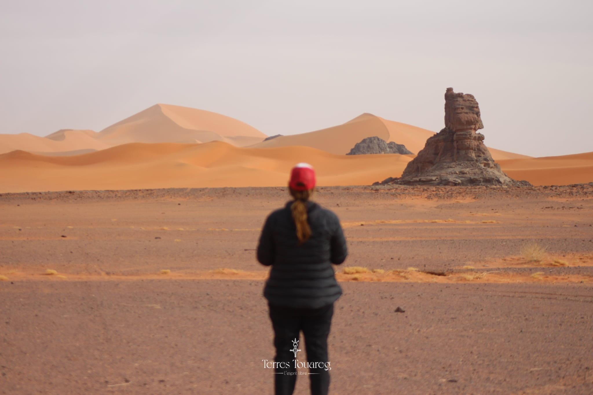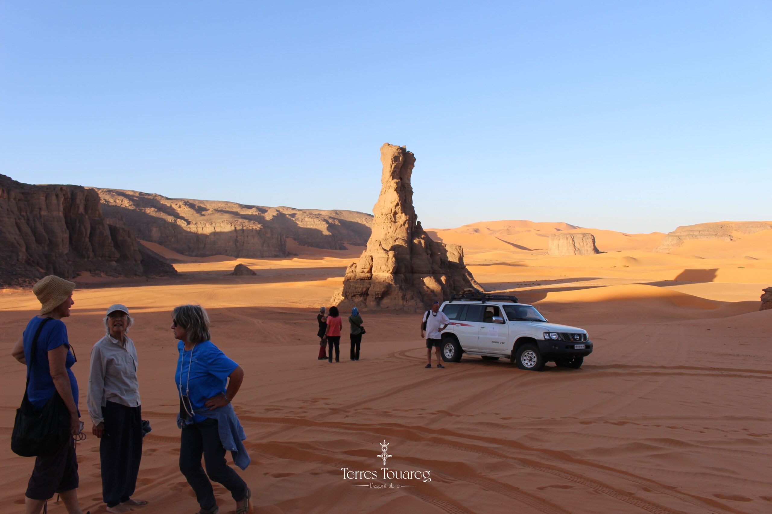 J'ai choisi une formule particulière car je souhaitais être seul avec mes guides pour pouvoir écrire un livre tiré de ce voyage. Kelly l'organisatrice reste toujours très disponible et à l'écoute et toujours prête à rendre service avec la plus grande gentillesse. Le circuit du Tadrart Rouge est inoubliable, d'une grande beauté et d'une certaine rudesse. Les guides sont d'une compétence sans faille et aux petits soins, cuisine, explications, repérage, ce qui rassure quand on met sa vie entre leurs mains. Ne vous formalisez pas de leurs discussions entre eux en Tamajaq et ne vous en sentez pas exclus, fondez-vous dans le truc. Pour ce qui me concerne j'ai eu en plus beaucoup de chance car la magie a opéré chaque jour, un jour le passage d'une comète dans le ciel nocturne, un autre la vipère des sables débusquée, le moula moula du Ténéré (petit oiseau noir et blanc) ou même le Him Him (lézard vert/bleu), un autre jour la pluie si rare ici, une petite ondée de quelques minutes juste sur moi, incroyable ! Les canyons et défilés déchiquetés, les paysages tantôt lunaires, tantôt martiens et l'émouvante mer de dunes qui est un must de ce voyage. Une fois que vous avez fait ce tour il reste présent à votre esprit et ne vous quitte plus. Vous pouvez faire appel à Terres Touaregs si vous voulez éviter les grands Tour Operator ou vous êtes 15, ou ça braille, où il y a la musique à fond et les selfies a gogo. Le décor demande, à mon avis, un minimum de recueillement et de temps pour s'émerveiller. Bon voyage !