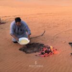 On a aussi eu la chance incroyable de participer à la Sebiba, une fête traditionnelle impressionnante, pleine d’émotions, de chants et de danse. Mais aussi la préparation du pain de sable, cuit sous les braises, que nous avons ensuite partagé ensemble dans le désert. Une vraie immersion !
